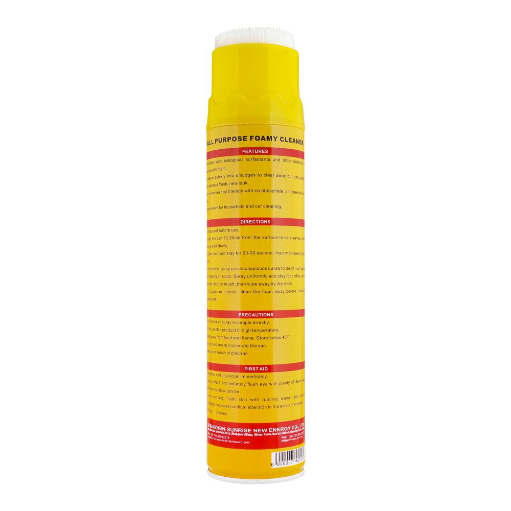 Formulated with biological surfactants and other materials to produce rich foam. Permeate quickly into smudges to clear away dirt and grease, and restore a fresh, new look. It is environmental friendly with no phosphate, and insensitive to skin. Multi purpose foam cleaner is excellent for household and car cleaning.